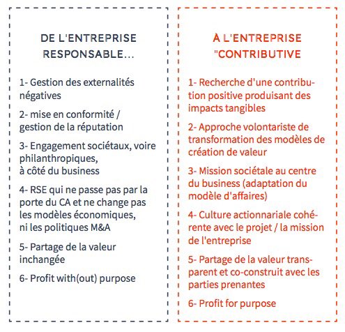 Très bon article dans Les Echos sur « l’entreprise contributive », qu’on peut penser comme la version 3.0 des entreprises à responsabilité ou a mission. On passe d’une logique de responsabilité à une logique plus intentionnelle de contribution: